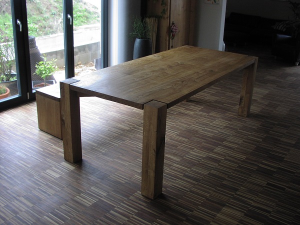 Eichen Tisch    Wildeiche mit Stahlgestell    Wildeiche mit Stahlgestell    Kernbuchen Tischplatte quer verleimt  Eine orginelle Art die Holzstruktur aufzuwerten  Tischplatte Kernbuche Gestell Edelstahl  Tischplatte Kernbuche Gestell Edelstahl   Rüster ist auch unter dem Begriff Ulme verbreitet. Bei Bezeichnungen beziehen sich auf den gleichen Baum.  Eichentisch rustikal Oberfläche geölt  Tisch und Bank in rustikaler regensburger Eiche   Kirschbaum Tisch 200/90 cm geölte Oberfläche    Tisch und Bank in Eiche mit Heizkörper Abdeckung